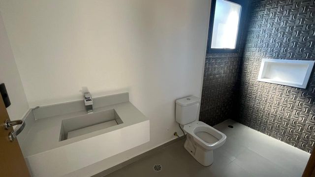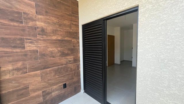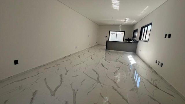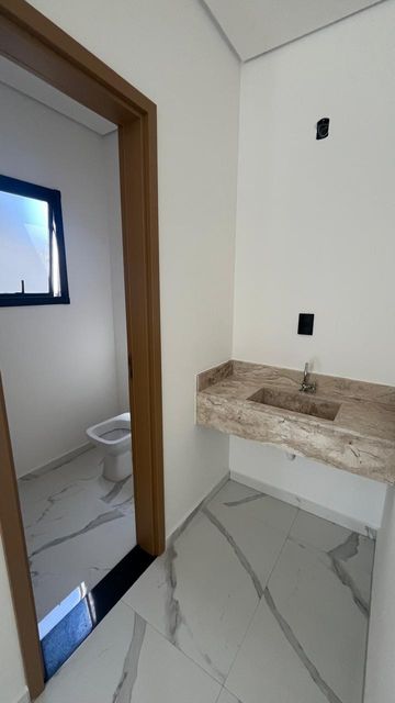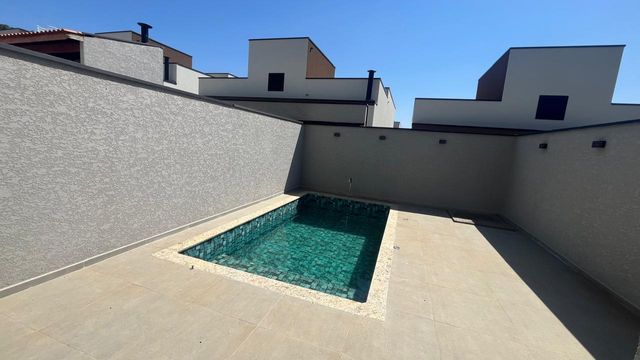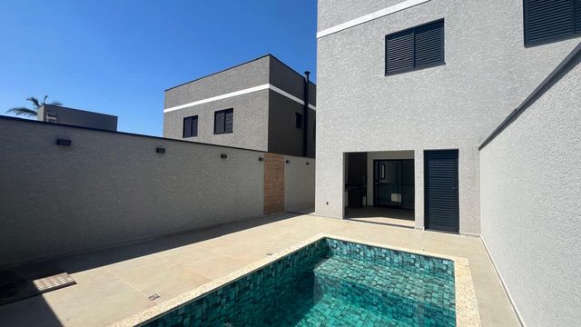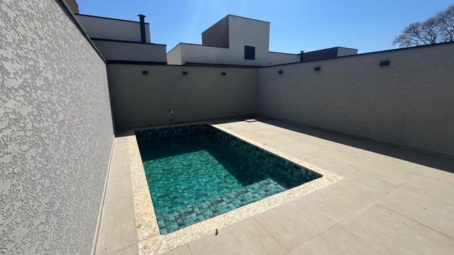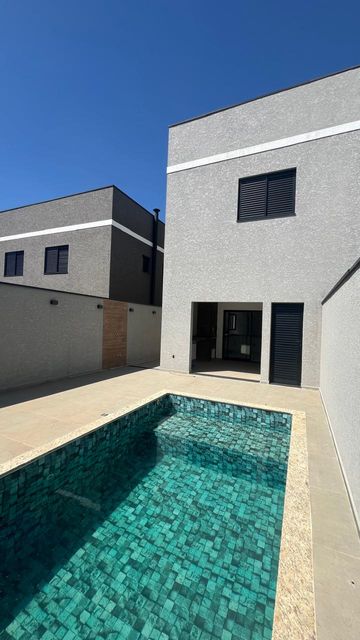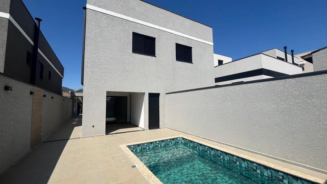 O imóvel é novo, tem um linda piscina, 3 suítes, sendo a principal com sacada, sala ampla integrada com cozinha, área gourmet, lavado, lavanderia, portão automático e garagem para 2 carros.